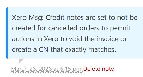 2. Send Credit Notes on Cancellation – For use when order sending is set to be On Creation. When an order is Cancelled ie payment is not received within the specified wait time set in WC or else by the customer, then since the order has already been sent to Xero it needes to be voided or else a credit note created and applied to it to be correct. Now Xeroom will do this automatically and Xero will apply this to the invoice so that it becomes Paid status. If you prefer to still do this manually then set to No and the invoice will be left as Unpaid in Xero. If your order sending is later in the order process ie after payment is paid eg Processing then this is not needed.